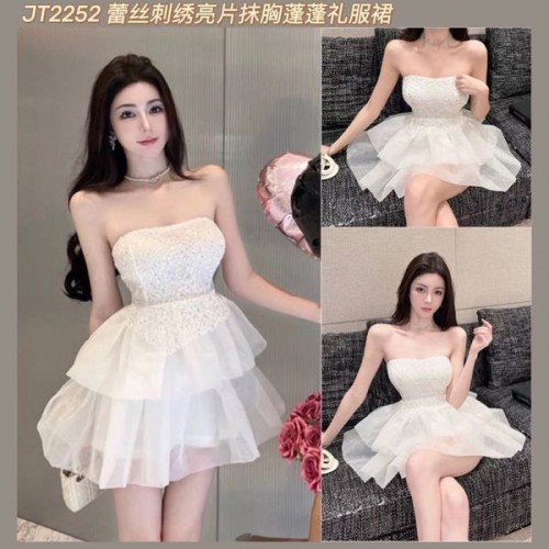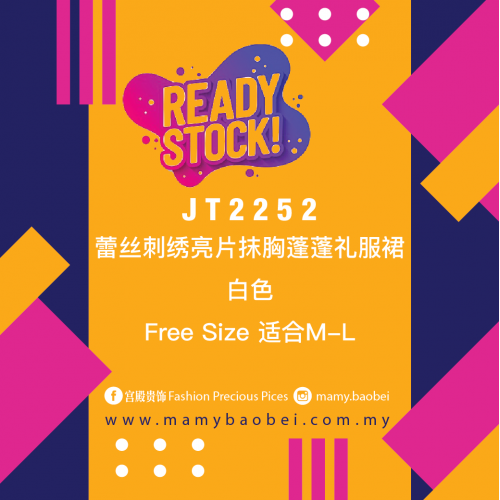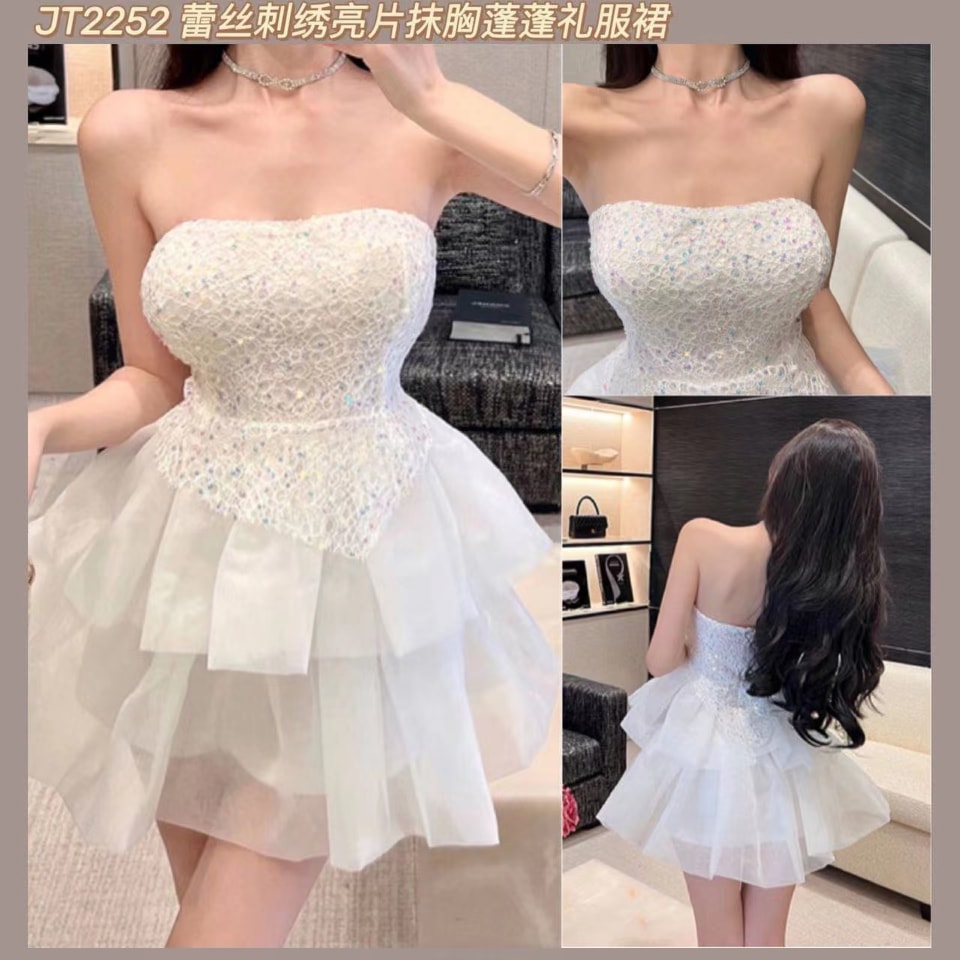 JT2252 蕾丝刺绣亮片抹胸蓬蓬礼服裙 Ready Stock