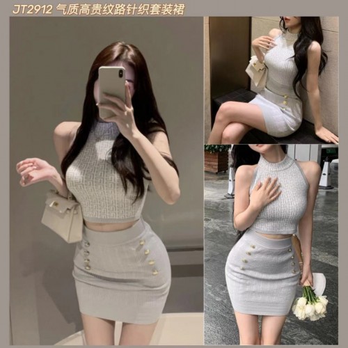 JT2912 气质高贵纹路针织套装裙 Ready Stock