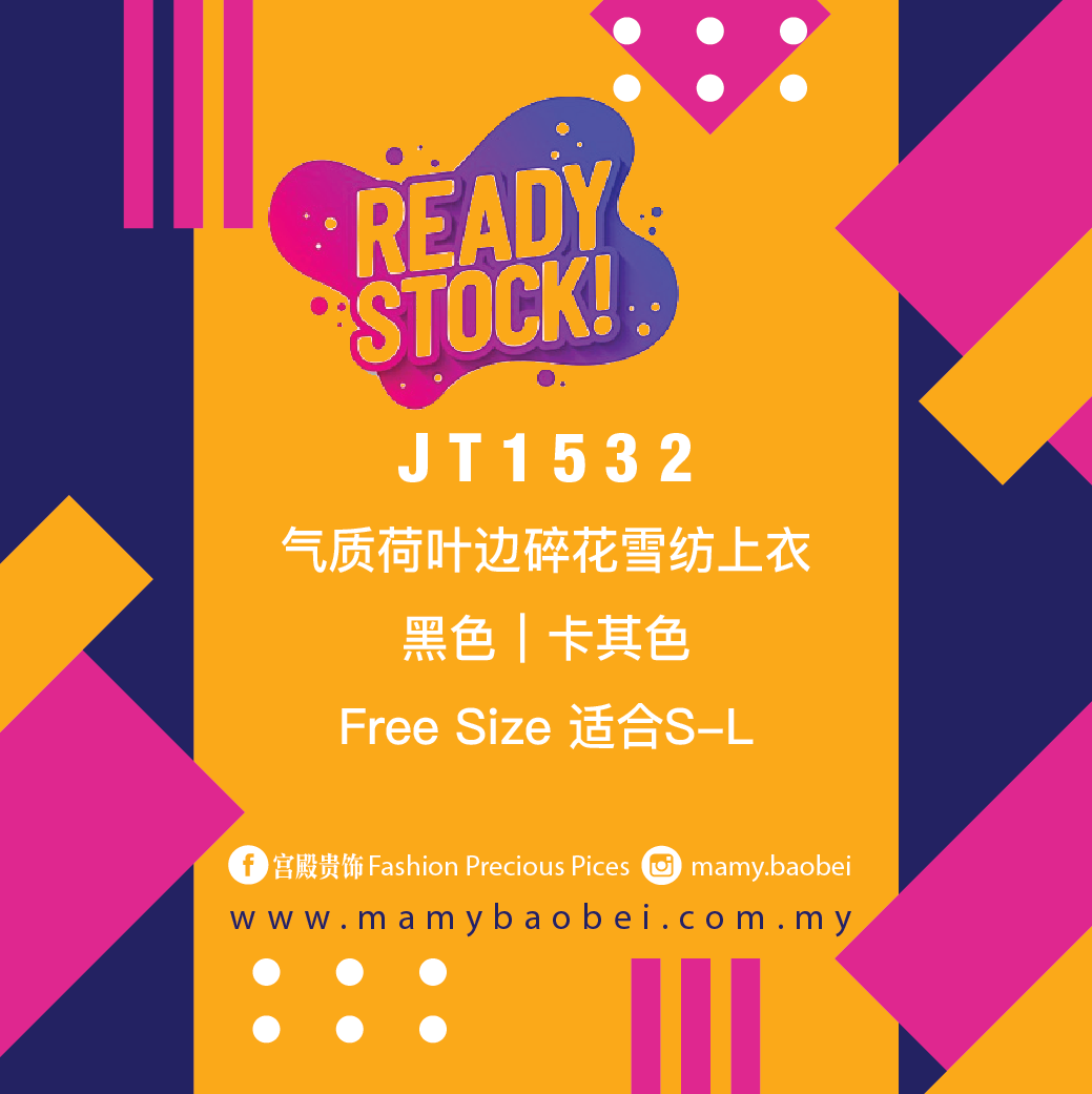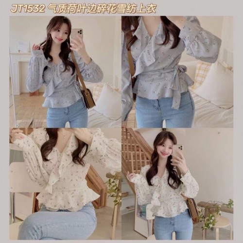 JT1532 气质荷叶边碎花雪纺上衣 Ready Stock