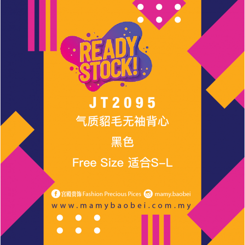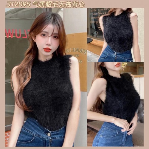 JT2095 气质貂毛无袖背心 Ready Stock