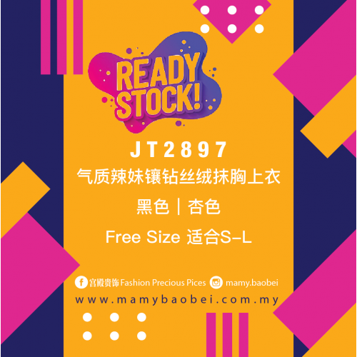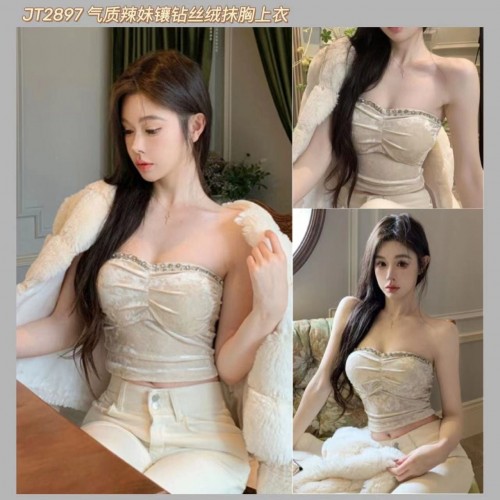 JT2897 气质辣妹镶钻丝绒抹胸上衣 Ready Stock