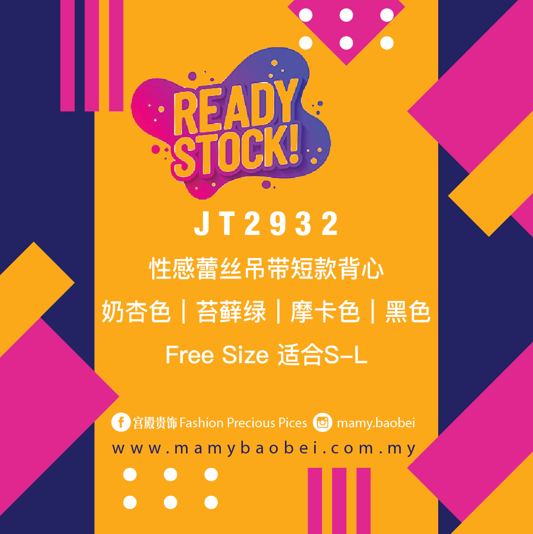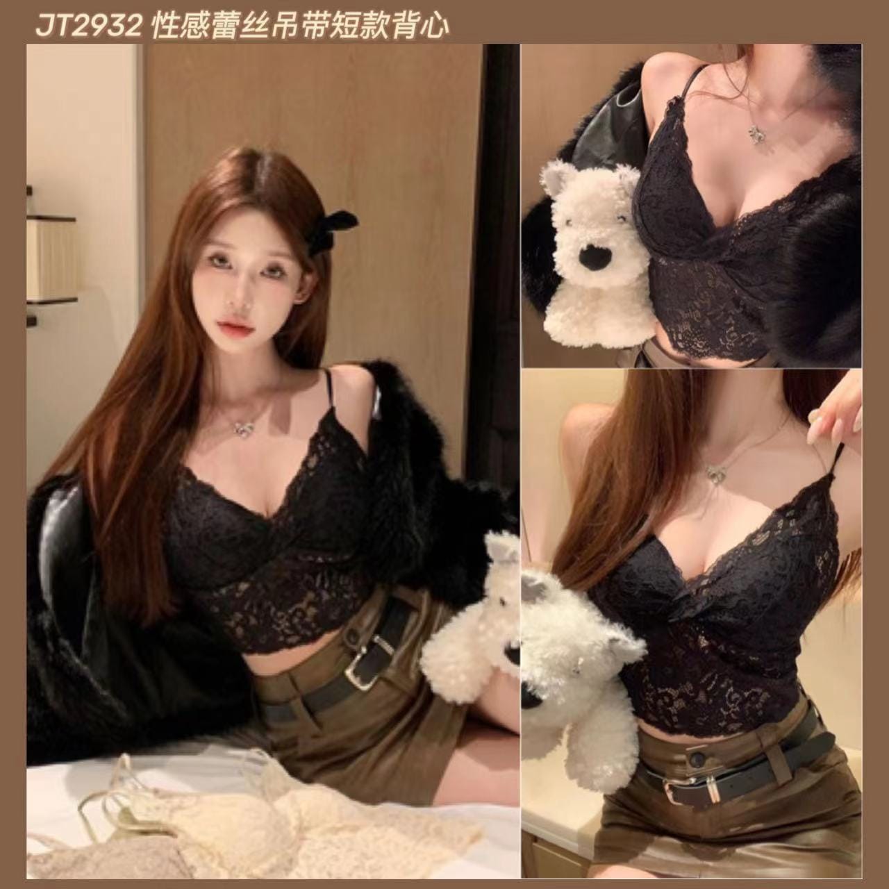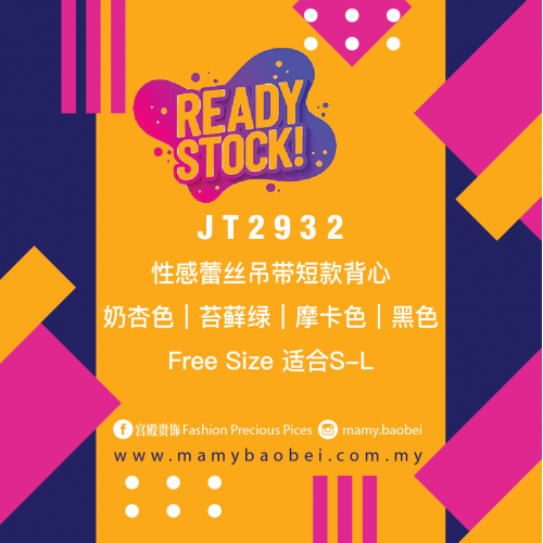 JT2932 性感蕾丝吊带短款背心 Ready Stock