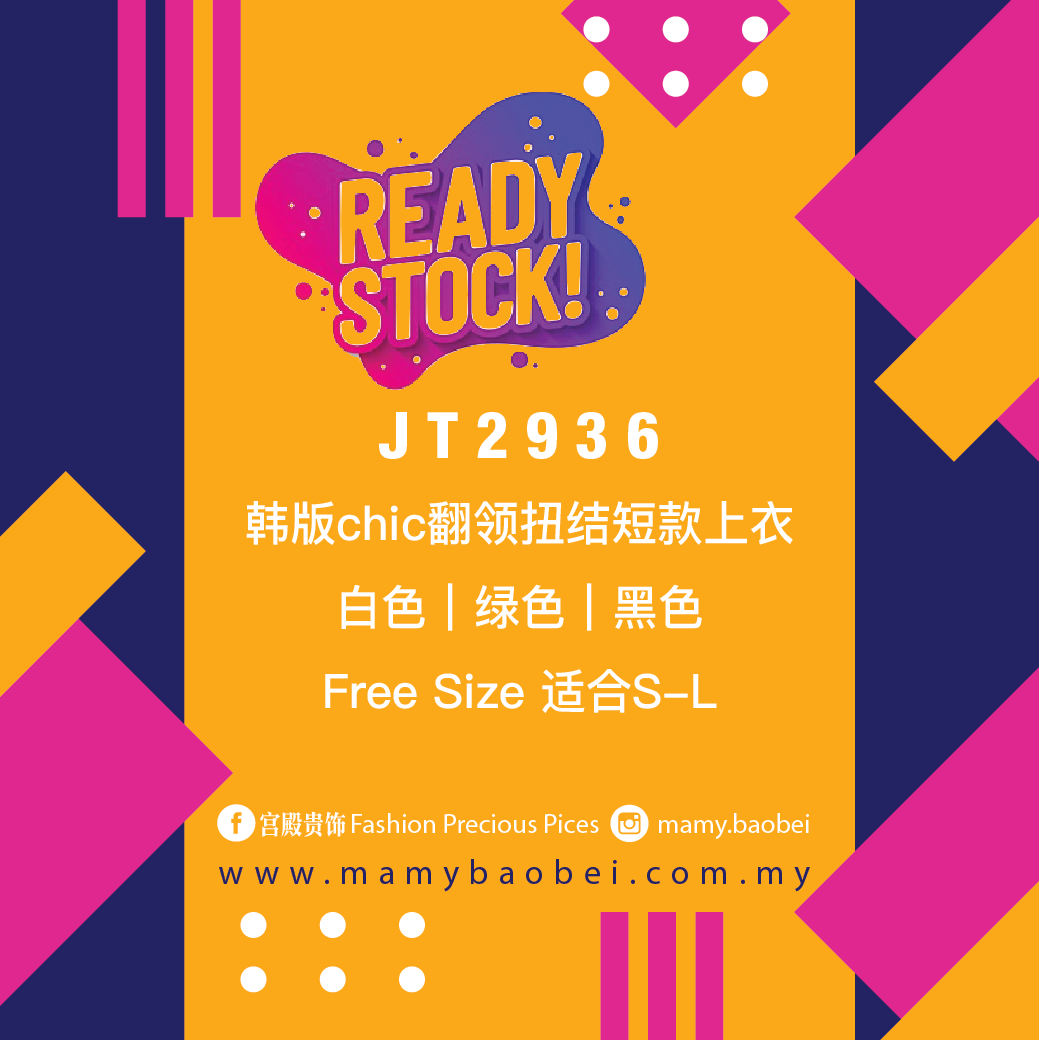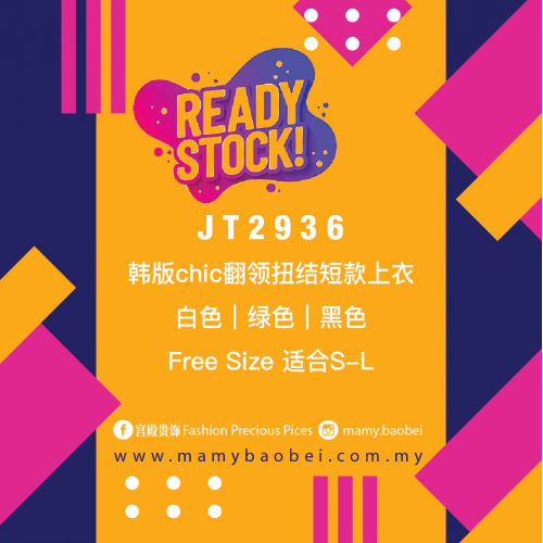 JT2936 韩版chic翻领扭结短款上衣 Ready Stock
