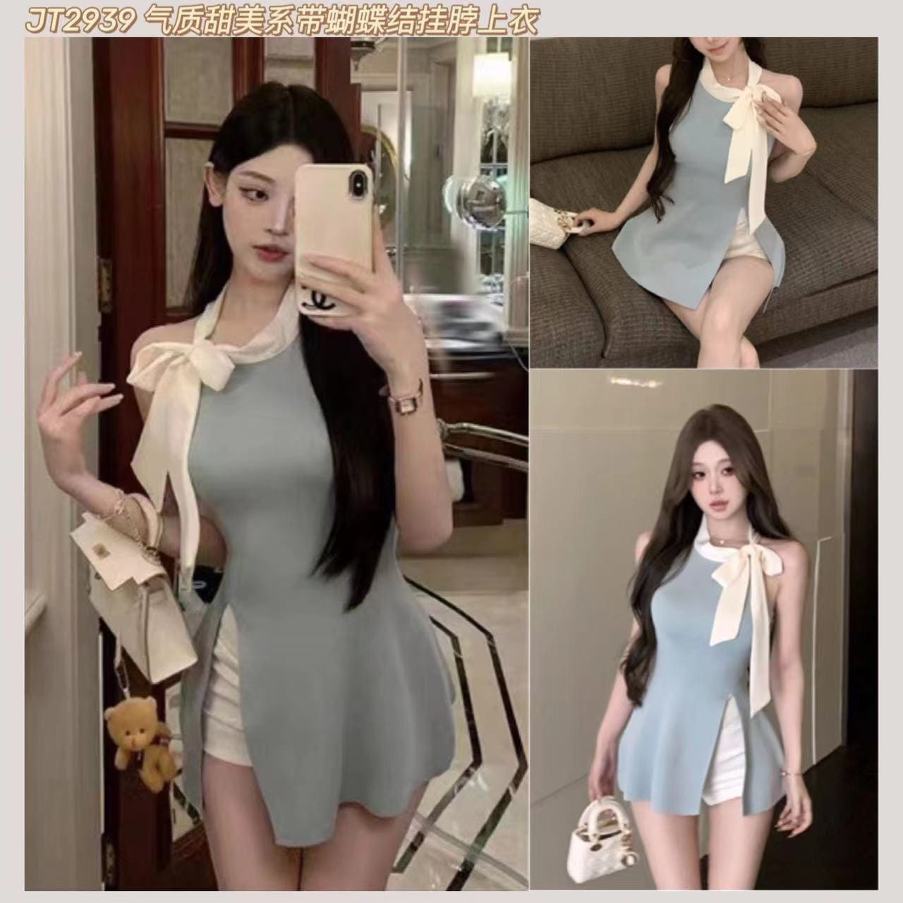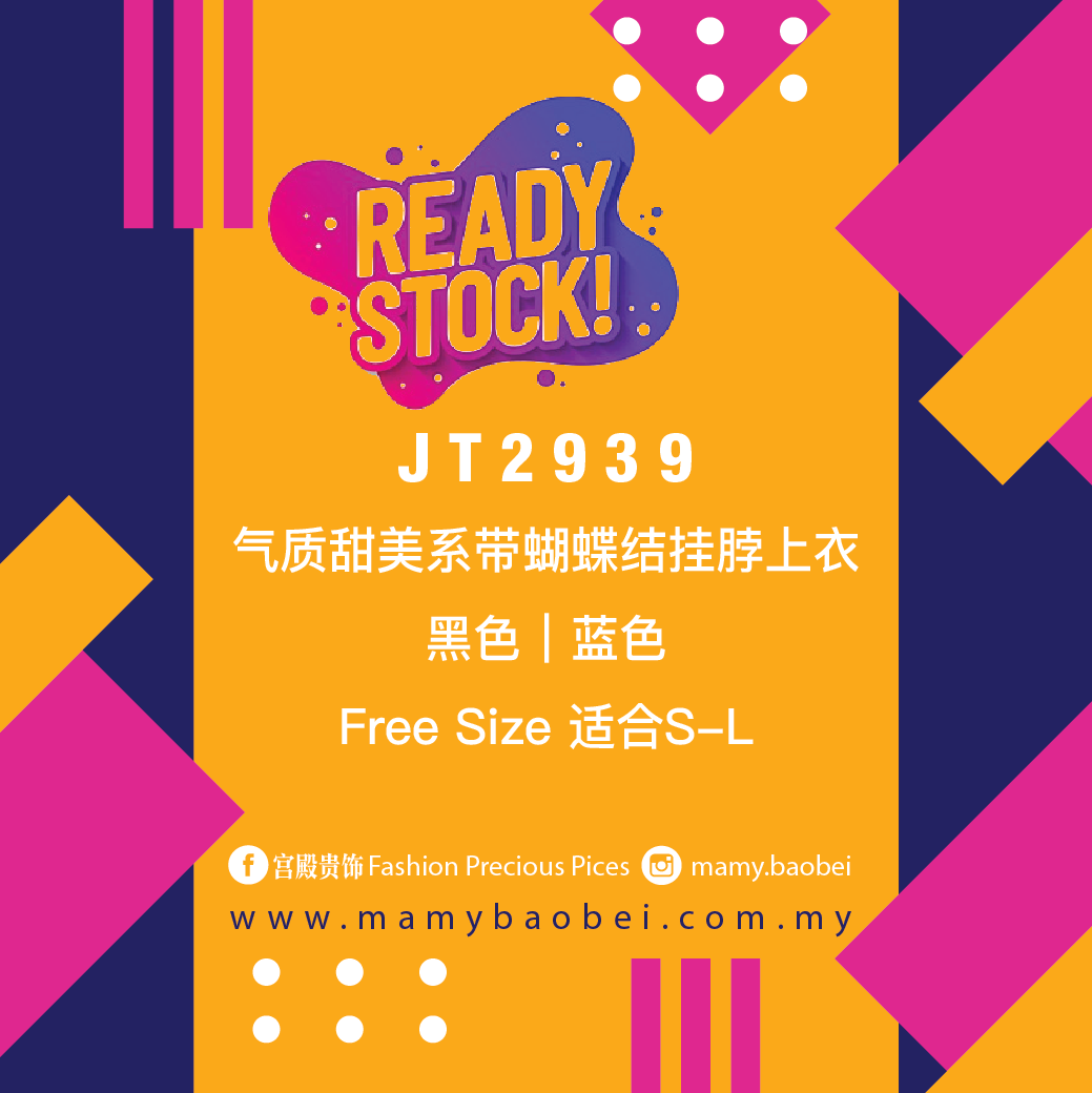 JT2939 气质甜美系带蝴蝶结挂脖上衣 Ready Stock