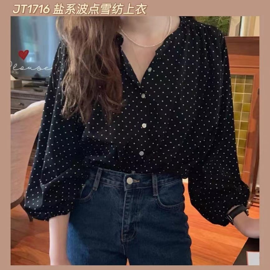 | Description | 《现货专卖场》JT1716 盐系波点雪纺上衣 Polka dot chiffon top |