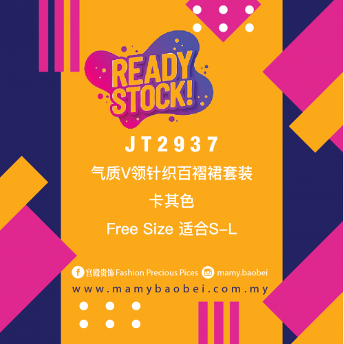 JT2937 气质V领针织百褶裙套装 Ready Stock
