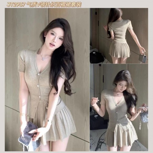 | Description | 《现货专卖场》JT2937 气质V领针织百褶裙套装 Temperamental V-neck knitted pleated skirt suit |