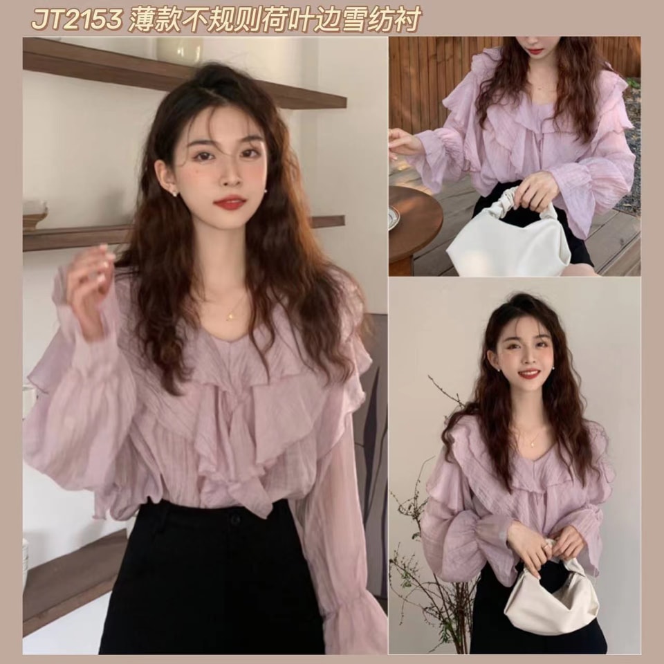 JT2153 薄款不规则荷叶边雪纺衬 Ready Stock